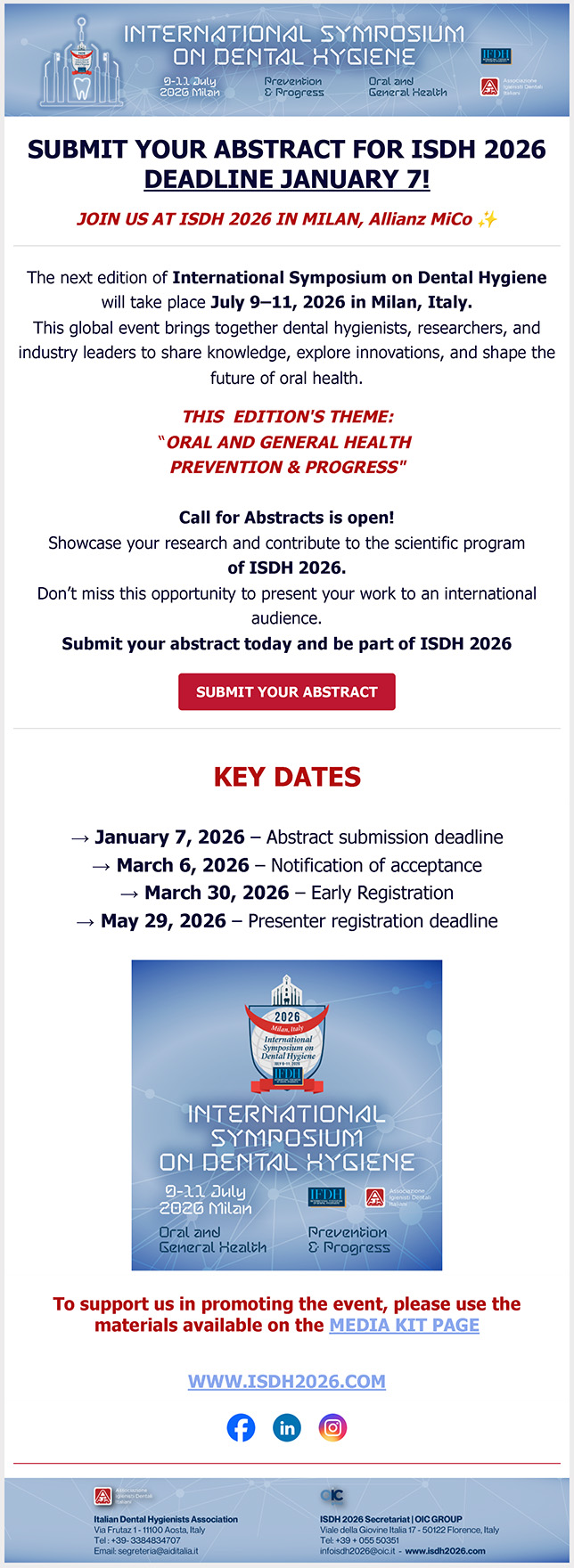 歯科衛生国際シンポジウム(ISDH)が2026年7月9〜11日・イタリアのミラノで開催されます。